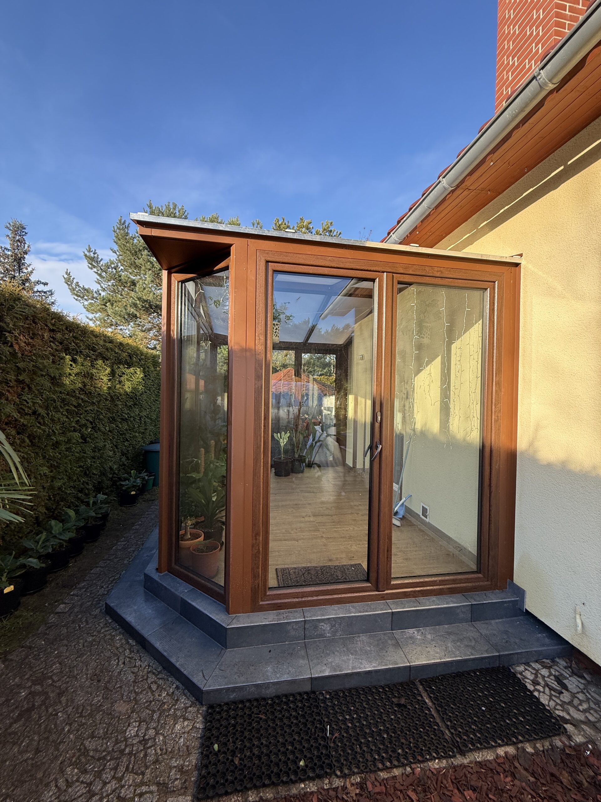 Takie zadaszenia przy domu to oszczędność miejsca, zajmują mniejszą