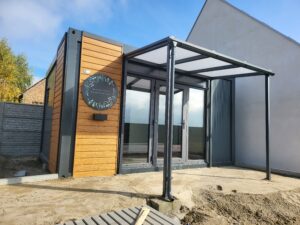 Kontenerowa pracownia florystyczna / kwiaciarnia + zadaszenie